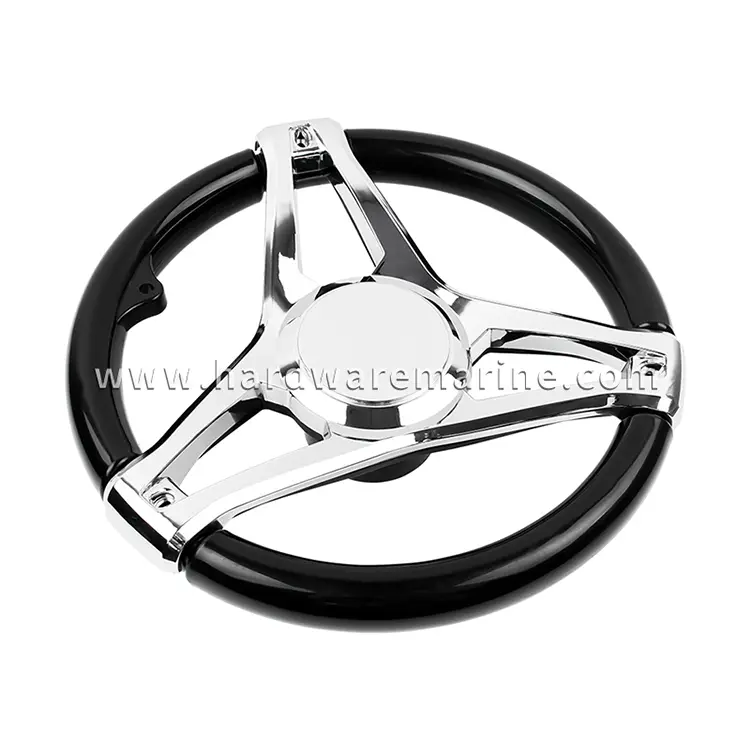 স্টেইনলেস স্টিল পিইউ ফেনা 3-স্পোক নৌকা স্টিয়ারিং হুইল নোব সহ