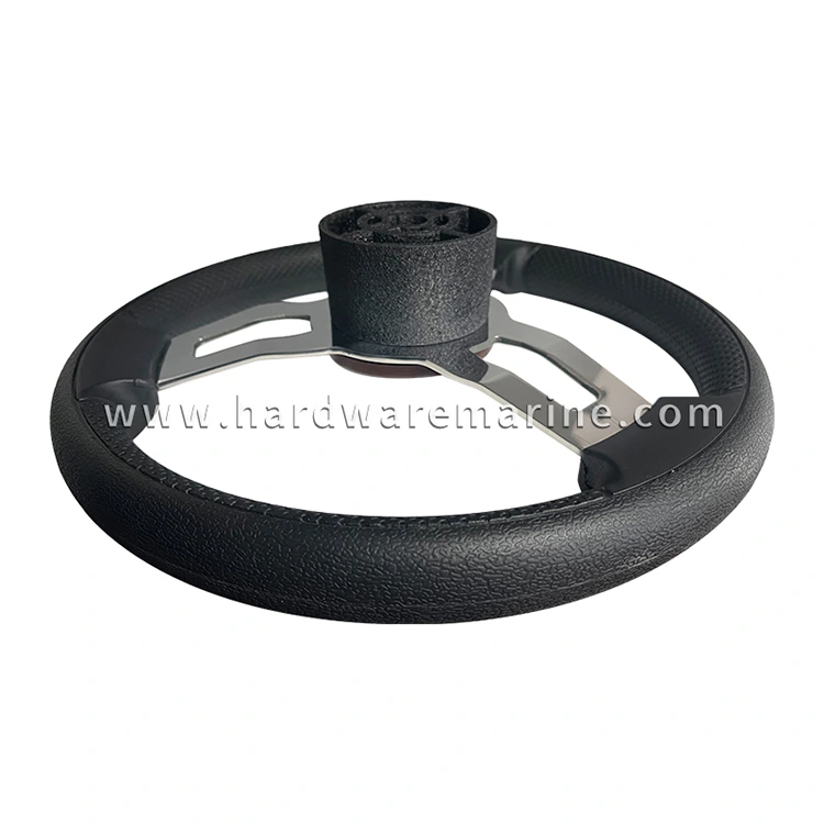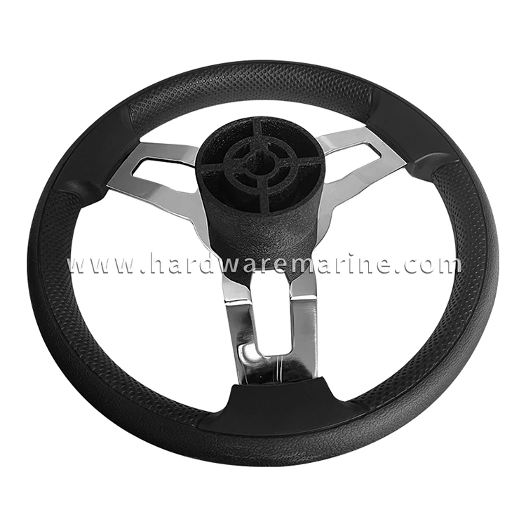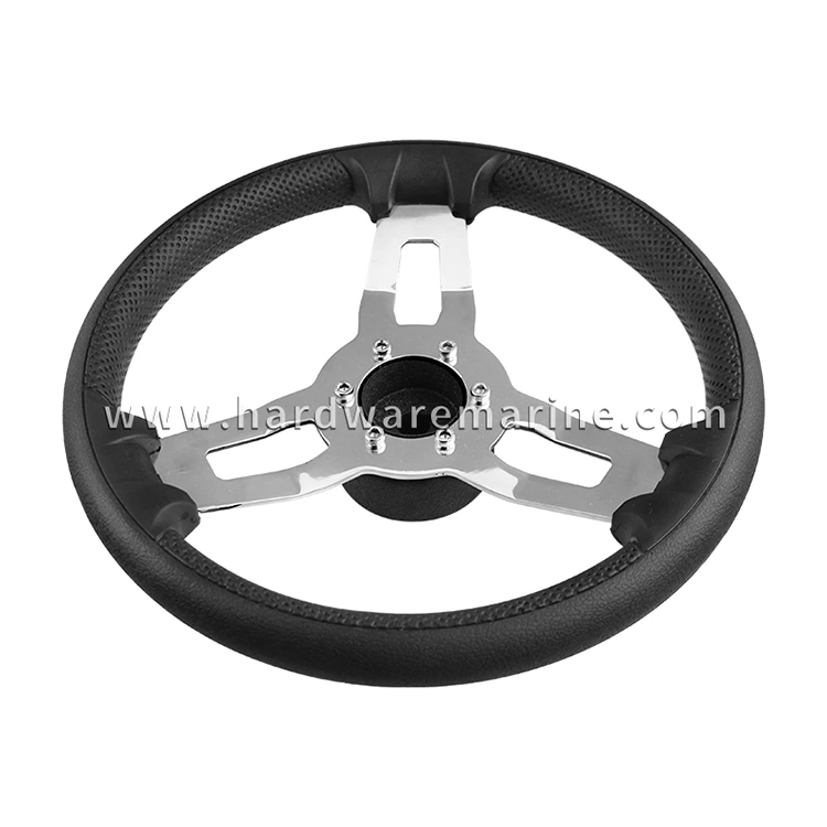 স্টেইনলেস স্টিল পিইউ ফেনা 3-স্পোক নৌকা স্টিয়ারিং হুইল নোব সহ