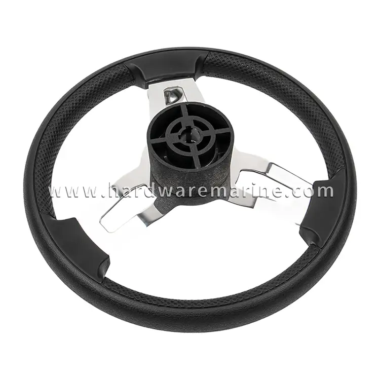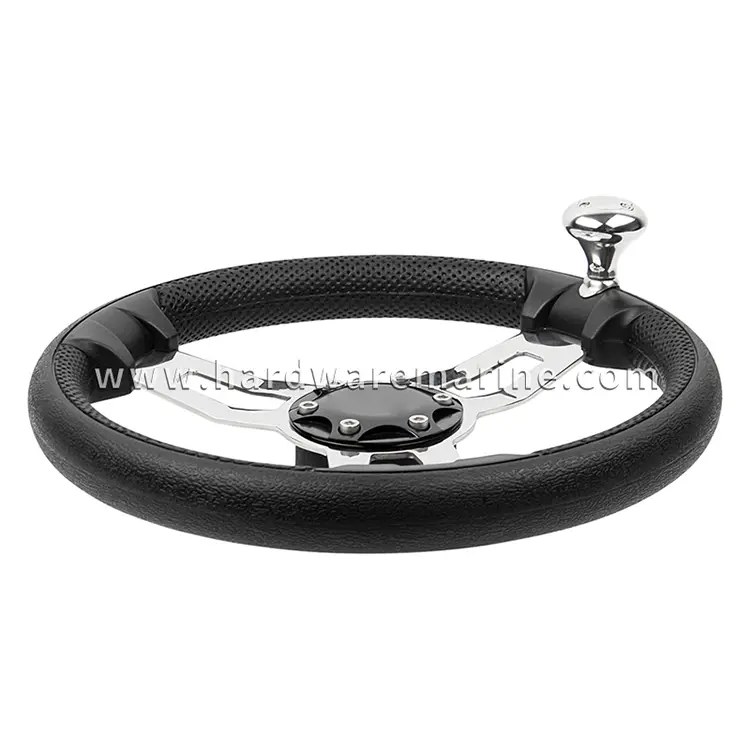 স্টেইনলেস স্টিল পিইউ ফেনা 3-স্পোক নৌকা স্টিয়ারিং হুইল নোব সহ |