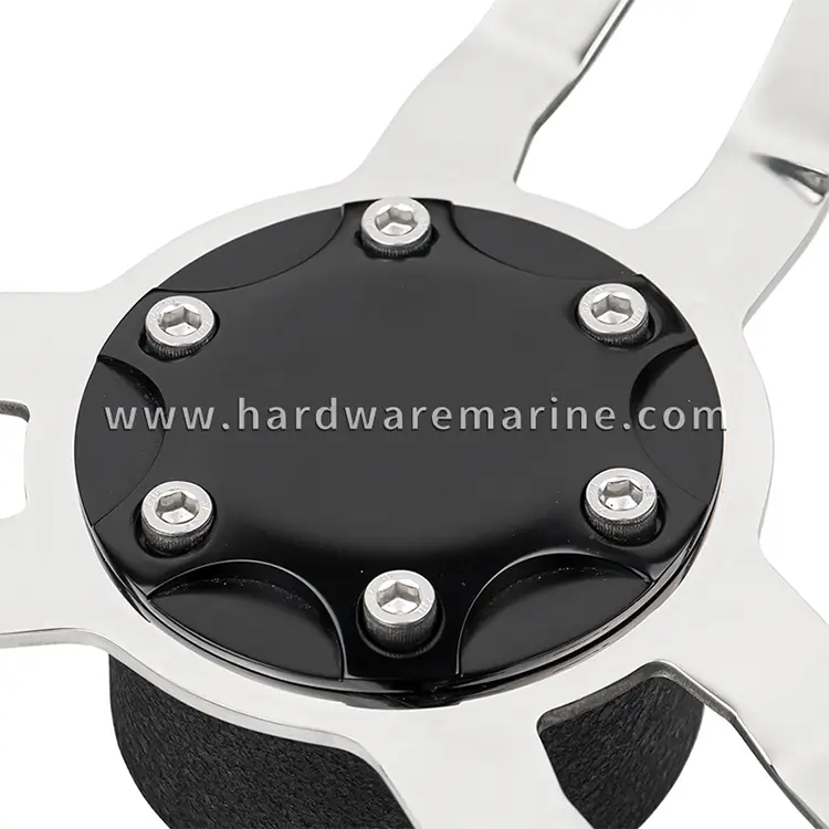স্টেইনলেস স্টিল মেরিন 4-স্পোক স্টিয়ারিং হুইল চামড়ার মোড়ক সহ